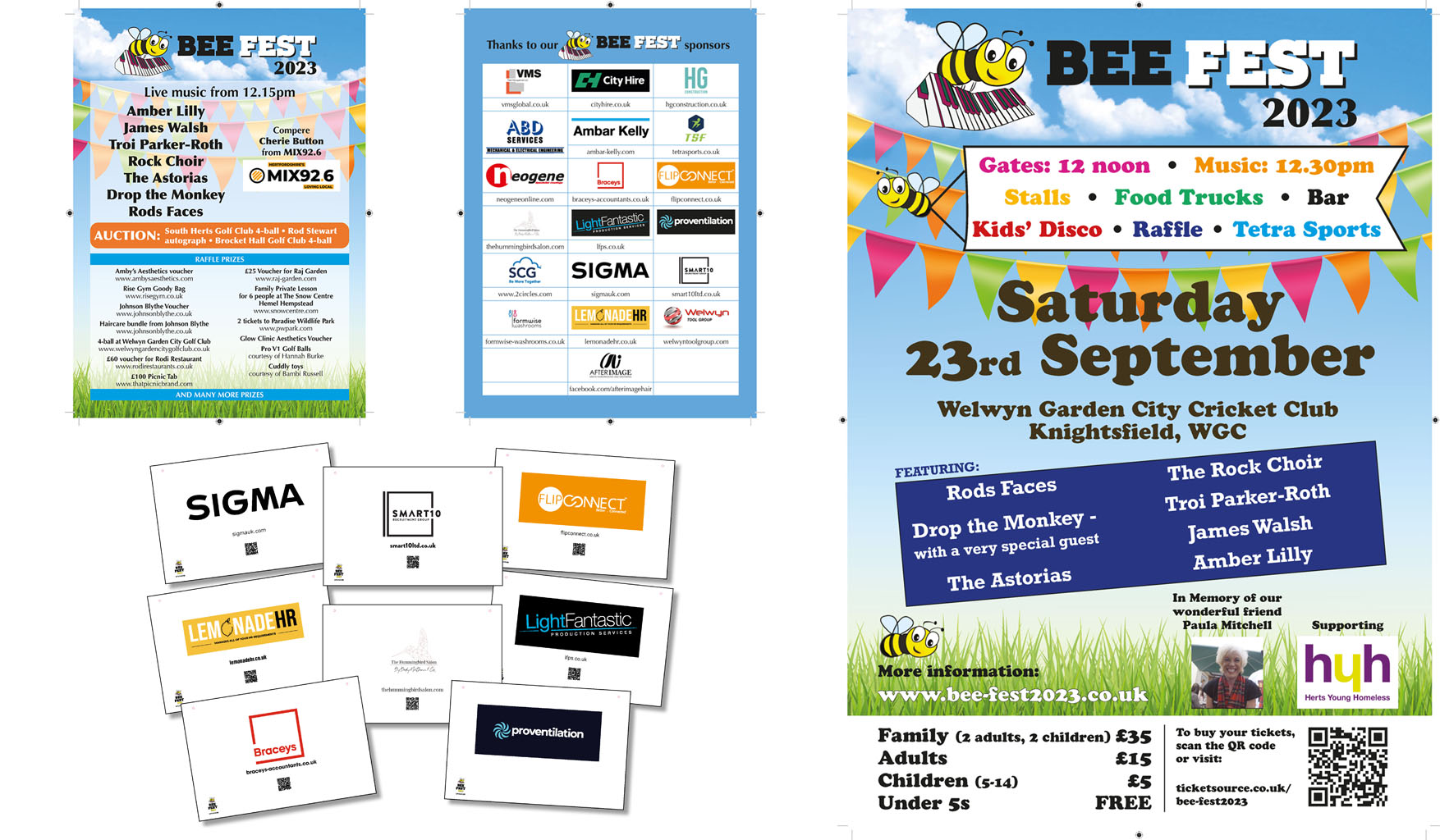 Design and artwork for posters, programmes and sponsor boards. The sponsor boards were printed onto 5mm foamboard with drilled holes for hanging.