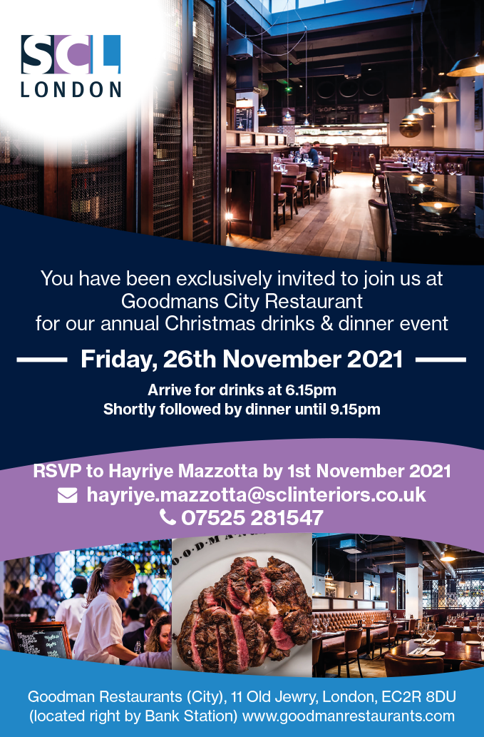 Client Invitations - for email delivery. SCL Interiors is a full service company providing interior infrastructure for the construction industry. They organise a series of events through the year to entertain their clients, which need to be delivered as a JPEG attachment via email.